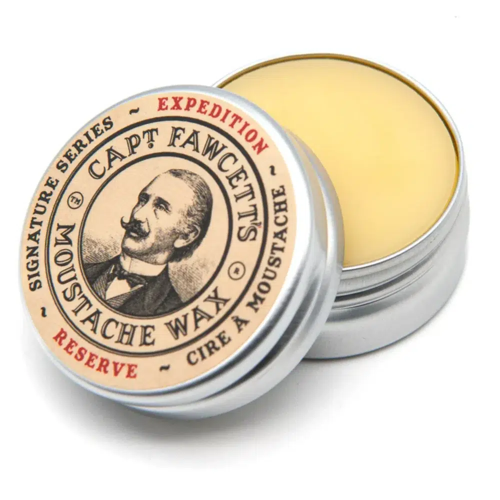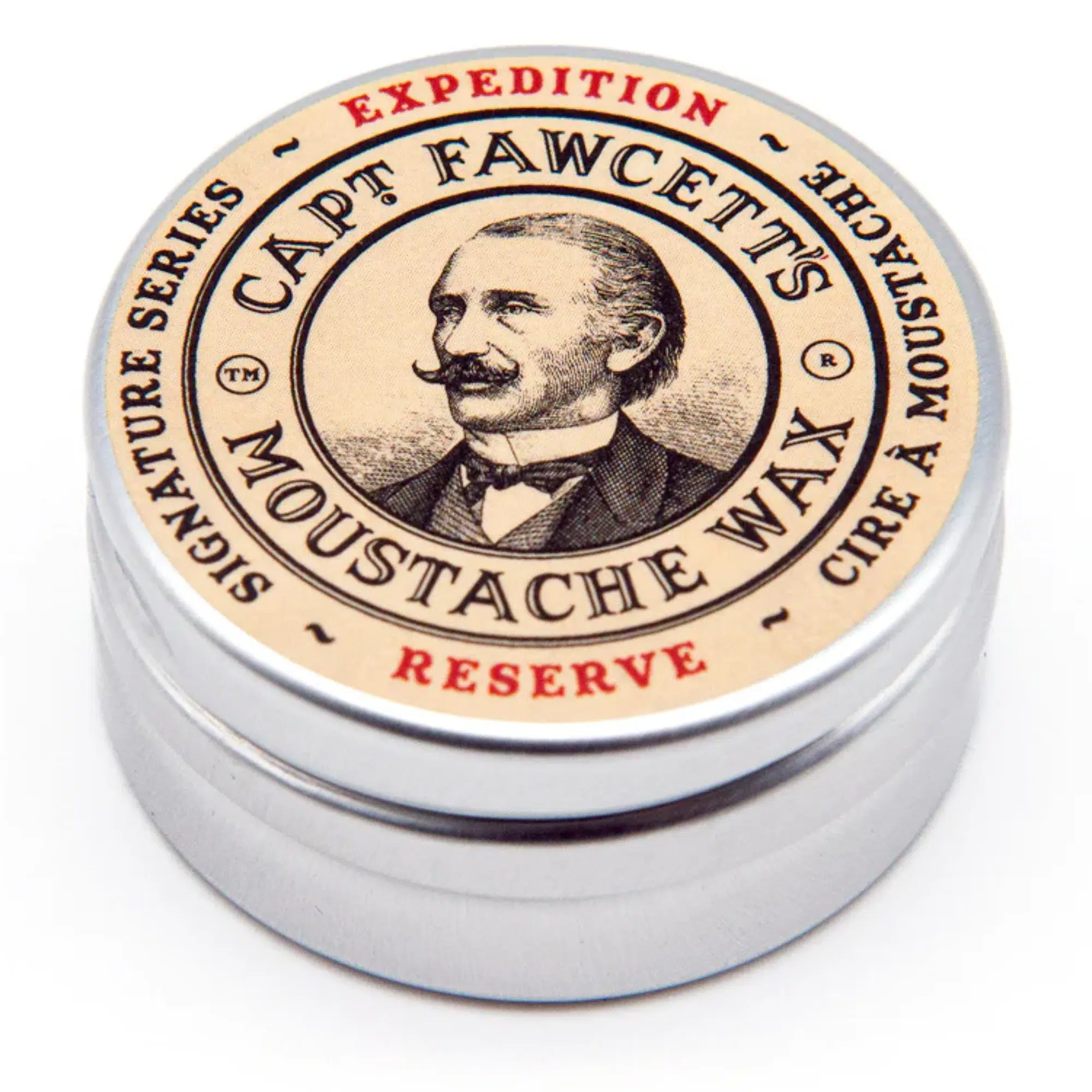 Captain Fawcett Expedition Reserve Moustache Wax 15ml. For the gentleman intent upon Keeping a Stiff Upper Lip Regardless, Captain Fawcett’s Expedition Reserve Moustache Wax is a hand-poured, traditional wax that offers firm, long-lasting hold. Fragranced with the Captain’s sophisticated signature blend, this splendid concoction ensures your upper lip topiary remains resolutely heroic and perfectly groomed throughout any encounter.