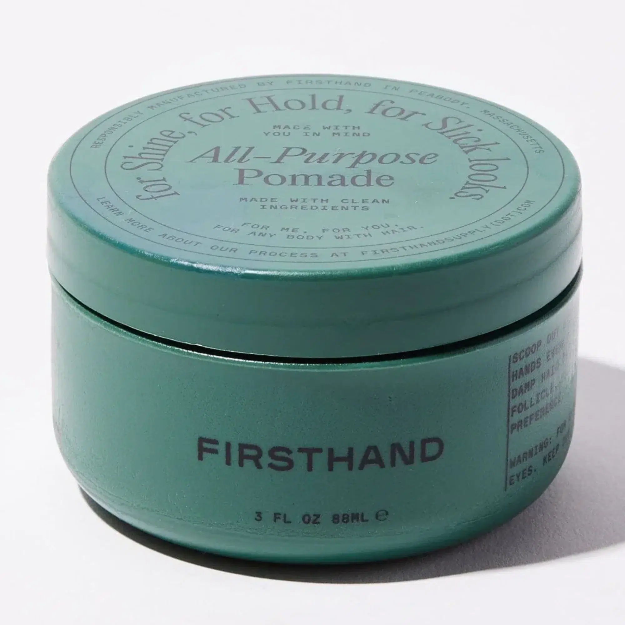 Firsthand All-Purpose Pomade provides versatile, long-lasting hair styling. This water-based pomade delivers a strong hold with a low-shine finish, letting you shape anything from textured, everyday styles to slick-back looks. It washes out easily and works on all hair types.