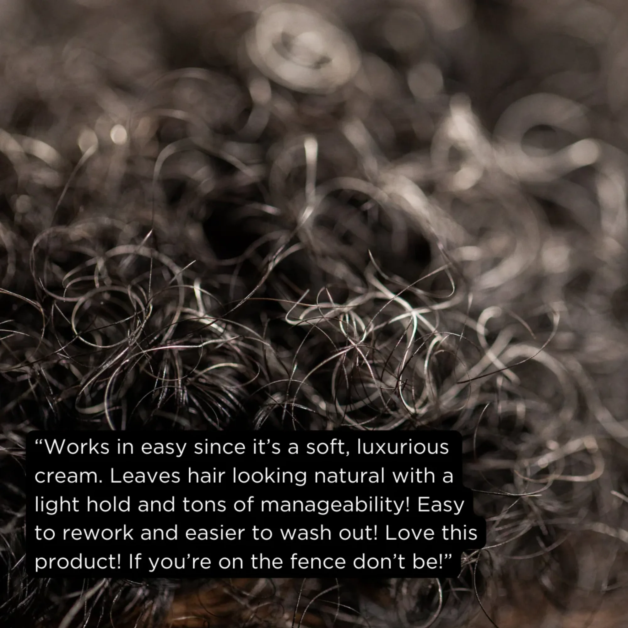 This conditioning cream offers low hold with a medium shine, making it ideal for long or coarse hair that requires added moisture and frizz control. It enhances curls and texture while keeping hair soft and flexible. The lightweight formula allows hair to move naturally without stiffness.